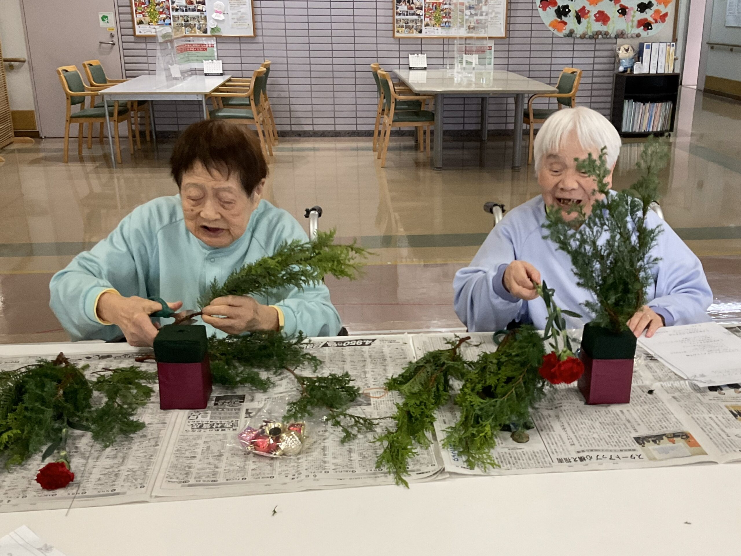 花舎U_taの先生による12月のフラワーアレンジメントがありました。